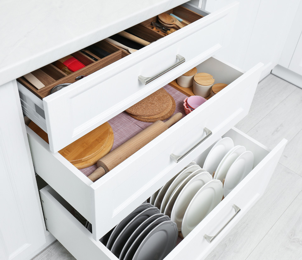 - Organizing cabinets, drawers, and pantry shelving for easy access